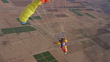 WS Man skydiving and floating in mid air with large yellow parachute above patchwork landscape / Eloy, Arizona, USA - HD stock video