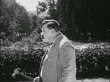 B/W 1926 PROFILE man (Vernon Dent) standing outside raising hammer / head flying off of hammer - stock video