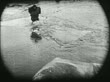 B/W 1920 man (Richard Barthelmess) struggling to carry woman (Lillian Gish) over ice floes / feature