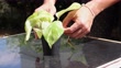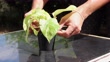 4K,man take care Golden Pothos tree in plastic pot in home garden - 4K stock video