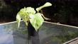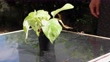 4K,man take care Golden Pothos tree in plastic pot in home garden