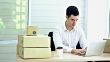 Man working using laptop check packing list order. Woman sent packing box for shipping parcel package at office. Delivery Shopping online. - 4K stock video