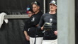 TAMPA, FLORIDA - FEBRUARY 17: Manager Aaron Boone #17 of the New York Yankees reacts as the pitchers workout at George M. Steinbrenner Field on February 17, 2026 in Tampa, Florida. (Footage by Kevin C. Cox/Getty Images)