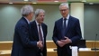 BRUSSELS, BELGIUM - DECEMBER 8: (L-R) Managing Director of the European Stability Mechanism (ESM) Pierre Gramegna talks with the EU Commissioner for Economy Paolo Gentiloni and the French Minister of the Economy, Finance and Recovery Bruno Le Maire prior the start of an EU EcoFin MInisters meeting in the Europa building, the EU Council headquarter on December 8, 2023 in Brussels, Belgium. The Council will seek a general approach on the proposed reform of the economic governance framework. Ministers will adopt implementing decisions approving modified recovery and resilience plans, submitted by some member states. The presidency will present progress reports on own resources and the single currency package. Ministers will discuss the economic and financial impact of Russia's aggression against Ukraine and the European Semester. (Footage by Thierry Monasse/Getty Images)