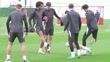 MANCHESTER, ENGLAND - NOVEMBER 6: Manchester United's Leny Yoro attends rondo during practice ahead of their Europa League match against PAOK at Carrington Training Ground on November 6, 2024 in Manchester, England. (Footage by Niche Sport Media via Getty Images)