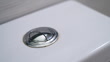 Man’s hand flushing water in toilet for cleaning. Cleaning and healthy concept.