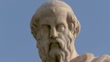 Ancient Greek philosopher Plato. Goddess Athena on background. Athens academy.