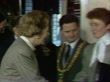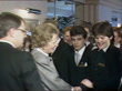 Margaret Thatcher visits Scottish Enterprise Zone; a) (Cole,Simon)SCOTLAND: Greenock:INMS PM Margaret Thatcher (Prime Minister) chats worker during visit to computer component manufacturer TCMS Computer component TILT UP Thatcher looks on as worker demonstrates machineEXTCBV Anti-Thatcher demonstrators with lacards PAN R-L ZOOM INDundee: INTCBV Margaret Thatcher shakes officials PAN L-RTCMS Thatcher listens to Lord Provost of Dundee Tom Mitchell then turns to sip from wine glassCMS SIDE Mitchell chats Scottish Secretary Malcolm Rifkind MP Tom Mitchell (Lord Provost, Dundee) INTVW SOF- (Would like Thatcher to visit US and persuade Ford to open car components plant in Dundee)/ "Everything's in Ford's favour - case for Dundee"CMS Fork stuck in omelette and raised TILT UP Thatcher swallows omelette and turnsCMS ChefCMS Margaret Thatcher MP (Prime Minister) interview SOT- (Criticises unions for hindering job creation) "We have faith in the ordinary trade union member - dinosaur or left winf trade unionists are stopping the jobs we want to seeCMS SIDE Thatcher as shakes workers EXT CMS Car pulls away PAN R-L as Thatcher seated in back TX:30.3.88/NAT