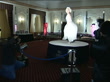 Marilyn Monroe 'Lost Collection' dresses exhibited in Brighton; ENGLAND: Sussex: Brighton: INT**flash photography throughout**General views and close ups of white halter neck pleated dress that actress Marilyn Monroe wore in the film 'The Seven Year Itch' as worn by Monroe look-a-like model / Close shots and general views of photographers snapping model / Monroe look-a-like and male model posing next to gold lame gown Monroe wore in 'Gentlemen Prefer Blondes' / General views and close ups of the glittery red evening length gown worn by Monroe in the opening sequence of 'Gentlemen Prefer Blondes' including good close shot of the diamante clasp / General views and close ups of design sketches for the pink satin evening gown Monroe wore when singing 'Diamonds are a Girl's Best Friend' including gloves worn by Monroe