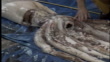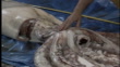 A marine biologist inspects the carcass of a giant squid caught off the New Zealand shore.
