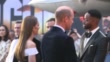 Film: 'Top Gun: Maverick': Duke and Duchess of Cambridge attend premiere; ENGLAND: London: Leicester Square:EXTCatherine, Duchess of Cambridge (Kate Middleton) and Prince William, Duke of Cambridge meeting stars of 'Top Gun 2', introduced by Tom Cruise (Actor) and Jerry Bruckheimer (Producer) - Greg Tarzan Davis, Danny Ramirez, Jay Ellis, Lewis Pullman and Glen Powell (Jon Hamm, Jennifer Connelly and Miles Teller in background) - P15 jet (plane featured in Top Gun) backdrop