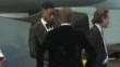 Film: 'Top Gun: Maverick' premiere red carpet; ENGLAND: London: Leicester Square:EXTCast of film standing in front of P15 jet and chatting - Jon Hamm (Actor), Glen Powell (Actor), Miles Teller (Actor), Jennifer Connelly (Actor), Lewis Pullman (Actor), Jay Ellis (Actor), Danny Ramirez (Actor), Greg Tarzan Davis (Actor)