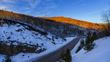 McClure Pass Colorado Day to Night Time Lapse - State Highway 133 going over MacClure Pass near Marble and Redstone, Colorado USA. Vehicles driving along road as a colorful sunset with warm colors fill the sky. Scenic view from above. Day to night time lapse in 4K resolution.