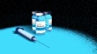 Measles Virus Vaccine- 3d rendered video of an injectable measles vaccine bottle. No people, copy space. Medical research technology. NPR style.