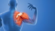 Inflamed shoulder muscle and painful joint. Highlights anatomy, muscle strain, and inflammation around the shoulder region. Ideal for healthcare, physiotherapy, and educational use. Useful for explaining shoulder pain, tendonitis, arthritis, or injury in clinical presentations, anatomy visuals, and patient education materials.