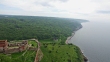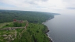 Flying over a steep rocky prominence at the northern tip of Bornholm and sees the impressive medieval fortress of Hammershus