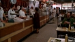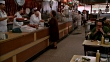 MEDIUM ANGLE OF COUNTER IN DELI OR RESTAURANT. CUSTOMERS EATING AT TABLES. WOMAN ORDERING AT COUNTER. KATZ OR KATZ'S DELICATESSEN. LOWER EAST SIDE.