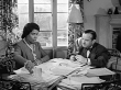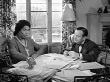 1951 Medium shot Contralto singer Marian Anderson and her pianist reading sheet music in her home studio/ Danbury, Connecticut, USA