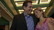 Medium shot couple on date talking and laughing while walking down street/ San Antonio, Texas - HD stock video