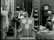 1913 B/W Medium shot Girl bringing grandfather his hat, adjusting his tie and kissing him before he leaves living room / USA - stock video