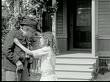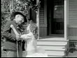 1913 B/W Medium shot Girl running down porch steps to meet grandfather and helping him inside house / USA - stock video