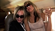 Medium shot Groupie drinking martini and sitting on rock star's lap on private airplane - HD stock video