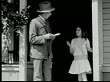 1913 B/W Medium shot Mailman delivering letter to girl outside house/ USA - stock video