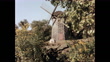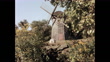 Medium shot of Jamestown Windmill and agricultural field against sky, Rhode Island, USA - 4K stock video