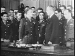Medium shot of soldiers as they sort through ammunition shells piled in a field / medium shots of American soldiers loading and firing artillery gun, rifle, rapid fire gun, machine gun / medium shot of General Dwight Eisenhower giving orders to a group of soldiers / wide shot of a group of soldiers visits the White House / Soldier Alvin F Jankowski asks Secretary of War Robert Patterson for more ammunition / wide and medium shots of factory workers and machines producing small ammunition / woman handles bullets / rows of shells stacked in ammunition plant.