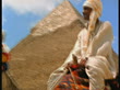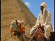 1969 medium shot pan man riding camel passes pyramid / Egypt - stock video