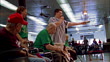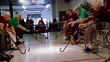 Medium shot referee starting game of cane hockey and seniors playing - HD stock video