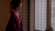 Medium shot tilt up courtesan wearing kimono standing up and leaving room / Hagi, Yamaguchi Prefecture, Japan - HD stock video