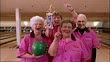 Medium shot woman's bowling team in pink jerseys holding trophy / smiling and gesturing at CAM - HD stock video