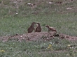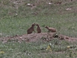 WWWA: A TALE OF TWO FOXES: WS Prairie Dogs standing by burrow in grassy field.