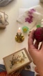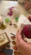 A vertical top-down video captures the delicate process of removing one of the beeswax layers from a handmade pysanka egg. A female hand in a traditional embroidered Ukrainian blouse carefully holds the egg near a lit candle, melting the wax to reveal the intricate design underneath. The scene unfolds over a charmingly messy table filled with crafting tools and materials—color-stained paper napkins, printed samples of traditional patterns, and a visible box with “З ПаÑхою!†(“Happy Easter!†in Ukrainian). The flickering candlelight and organic disarray create an authentic, intimate glimpse into the art of pysanka making.