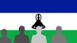 Black and white men silhouettes moving down revealing a Mosotho flag