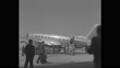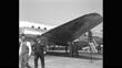 LS men standing at base of stairs to NX-19436, people walking back and forth in fgd / man in cockpit cleans windows with rag / CU NX-19436 nose and right propeller, man stands on wing, airport in bkgd / MS NX-19436 takes off / MS NX-19436 flies away from camera and wheels retract / NX-19436 lands / NX-19436 taxis at airport / NX-19436 on tarmac, two men walk toward camera, four men stand under wing, NX19436 written on underside of wing / Note: exact year not known; documentation incomplete