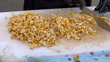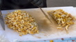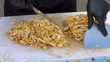 Mexican cook chopping grilled chicken meat to be used for chicken tacos at a street taco shop