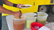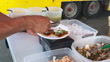 Mexican man pouring hot mexican sauce, chopped onion and cilantro over two street tacos al pastor - 4K stock video