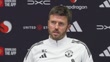 MANCHESTER, ENGLAND - FEBRUARY 27: Michael Carrick, interim manager of Manchester United, says there is "no drama" about player Benjamin Šeško not starting in matches, ahead of the club's English Premier League match against Crystal Palace during a press conference at Carrington Training Ground on February 27, 2026 in Manchester, England. (Footage by Niche Sport Media via Getty Images)