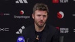 MANCHESTER, ENGLAND - MARCH 1: Michael Carrick, manager of Manchester United, speaks about his six wins and one draw record as manager following their Premier League match against Crystal Palace during a press conference at Old Trafford on March 1, 2026 in Manchester, England. (Footage by Niche Sport Media via Getty Images)