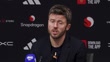 MANCHESTER, ENGLAND - MARCH 1: Michael Carrick, manager of Manchester United, speaks about Matheus Cunha following their Premier League match against Crystal Palace during a press conference at Old Trafford on March 1, 2026 in Manchester, England. (Footage by Niche Sport Media via Getty Images)