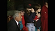 Michael Jackson in 1996 seated during powhiri reception by Māori at Carlton Hotel
