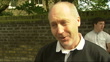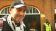 Michael Jackson statue at Fulham FC; Craven Cottage:EXTReporter to camera in front of statues of Johnny Haynes and Michael JacksonVox pops fans SOT***Music: Michael Jackson 'Bad' Epic records 504423 2***al Fayed dancing with young woman Name over entrance 'Fulham Football Club'al Fayed along PAN as stops to speak to young woman