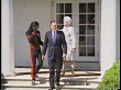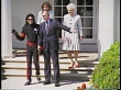 1990 MICHAEL JACKSON: WASHINGTON, D.C.: WS Michael Jackson, sunglasses, & President George H.W. Bush standing together at White House Rose Garden for press, daughter Dorothy Bush & Barbara Bush BG. DC, Artist of the Decade