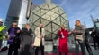 NEW YORK, NEW YORK - DECEMBER 27: Michael Phillips (L), the owner of One Times Square speaks while standing next to (L-R) a guest, Sherri White, Pitbull, Joy Mangano, the Founder of CleanBoss, before installing the newly designed Crystal Triangles on the New Year’s Eve Ball at One Times Square on December 27, 2024 in New York City. The New Year’s Eve Ball weighs 11,875 pounds and is covered with 2,688 crystal triangles. (Footage by Alexi Rosenfeld/Getty Images)