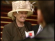 Mick Jagger and Gerry Marsden knighted: Interviews / photocalls; ENGLAND: London: Buckingham Palace:MS SIDE Gerry Marsden (of Merseybeat group Gerry and The Pacemakers) on steps with wife posing for press with MBE (received for charity work), 00.29.04 CMS Marsden and wife pose for camera (seen in foreground) holding medal ZOOM into medal in box (partially obscured), MS Marsden photocall with wife and others and camera seen in foreground, CMS Marsden and wife smiling for camera, MS photographer smiling as takes picture,