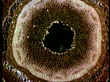 Microscopic cross sectional view through woody stems to show vascular bundles, xylem, cambium, phloem - stock video