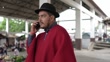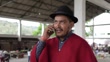 Mid adult man talking on mobile phone on a farmer's market' - 4K stock video