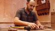 Middle Eastern Craftsman Skillfully Assembling Wooden Inlays in Historic Workshop - 4K stock video